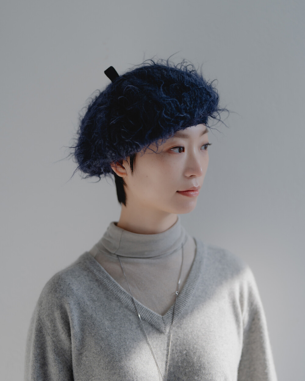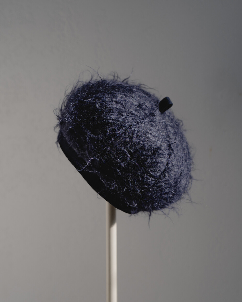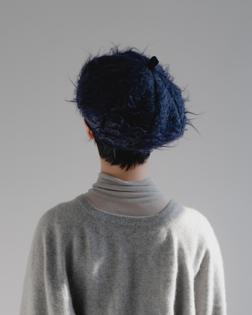 이마 밴드와 모자 꼭지 부분은 퍼 소재와 같은 컬러로 딥한 네이비 컬러의 울 소재로 마무리 되었습니다.