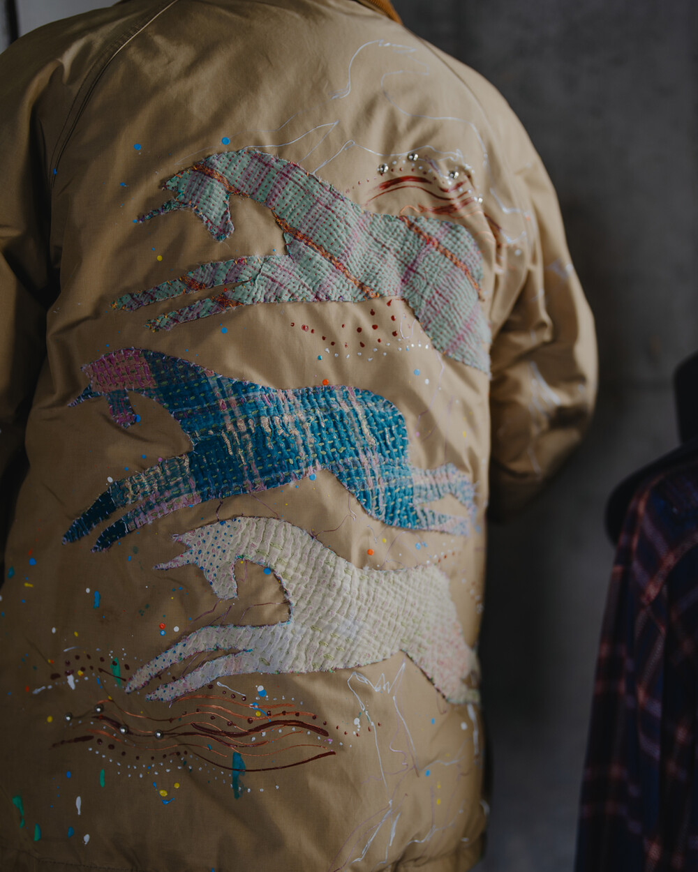 후면에는 빈티지 원단으로 시그니처 유니콘 패치를 수 놓았습니다.