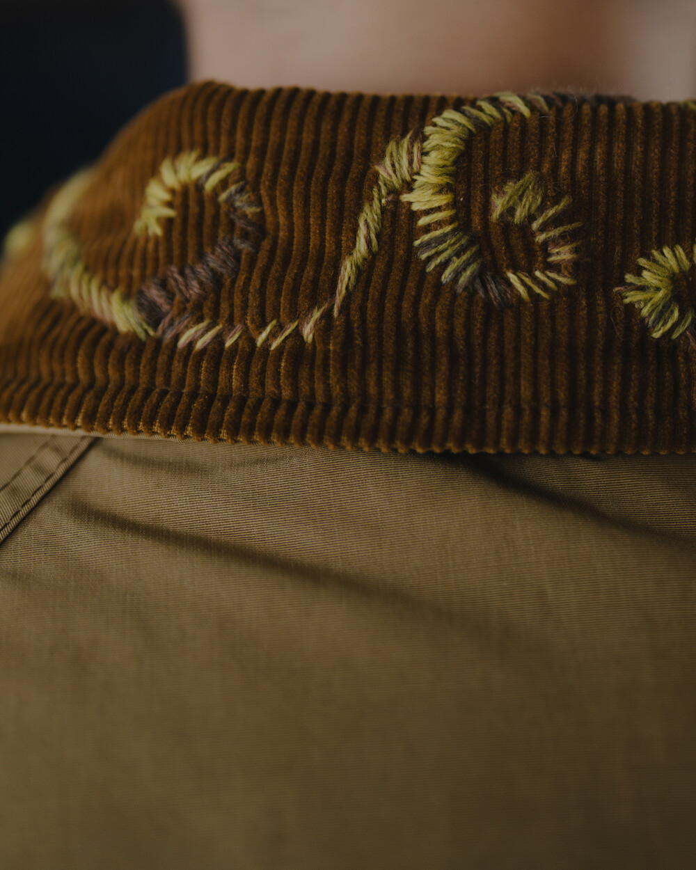 카라는 기존의 코듀로이 컬러와 텍스처를 그대로 살리고,