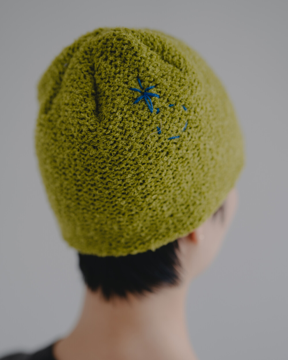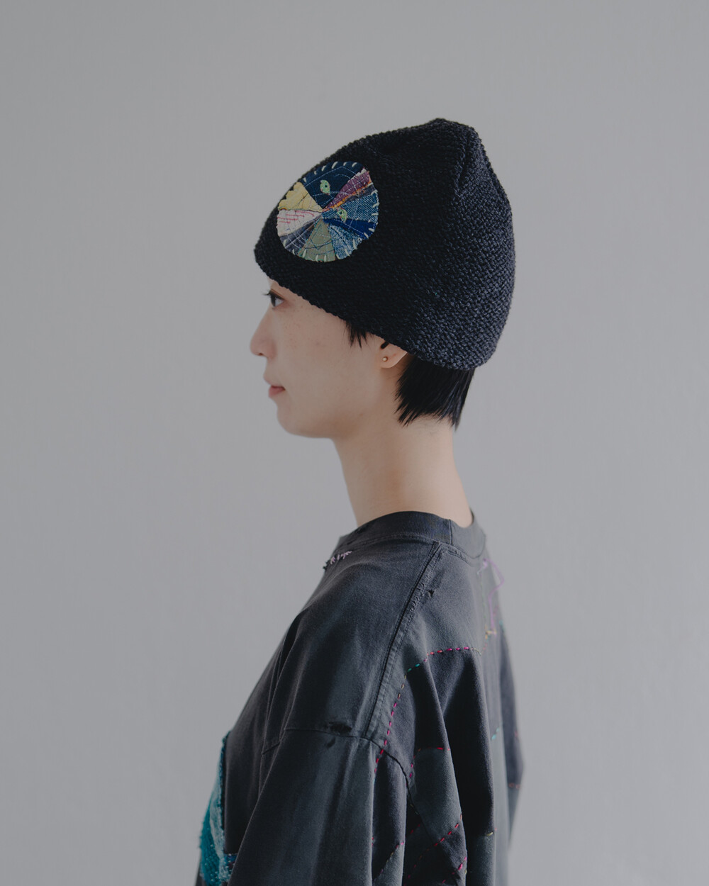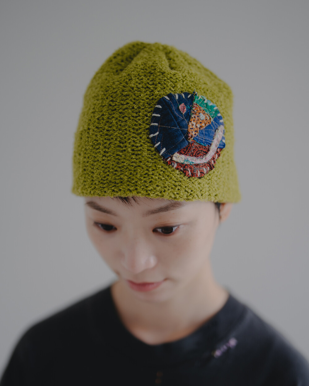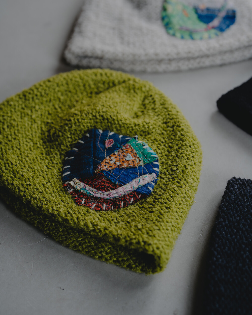 포근한 니트 비니에 원형 패치워크 자수가 더해져 각각 다른 색감과 디테일로 유니크한 매력을 보여줍니다.