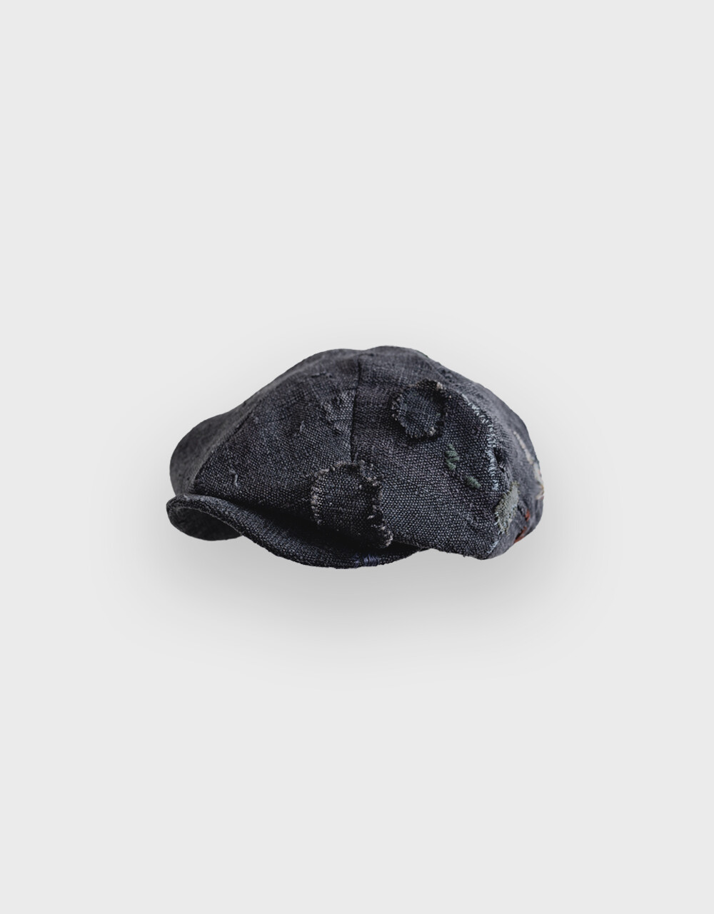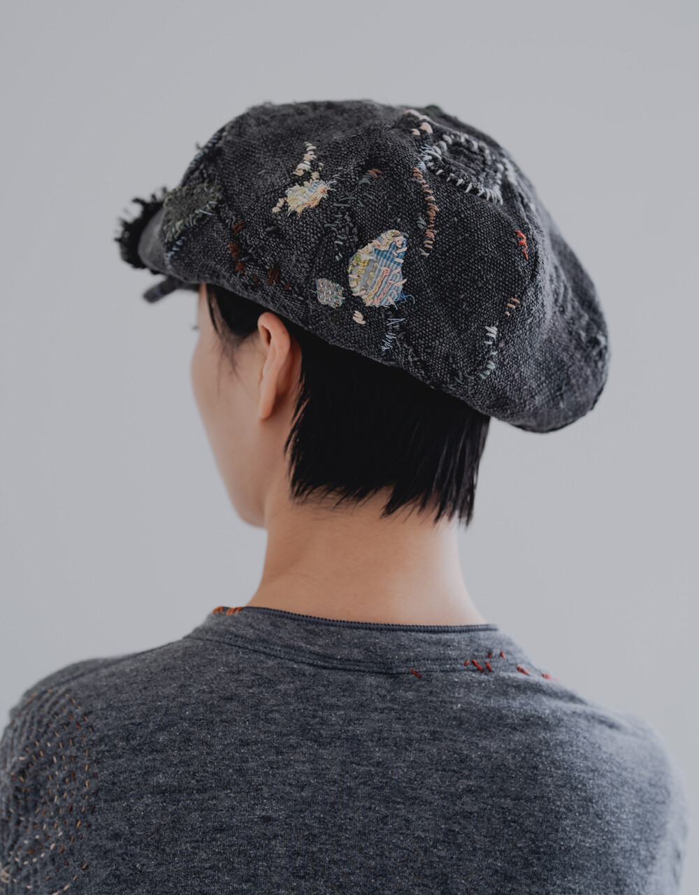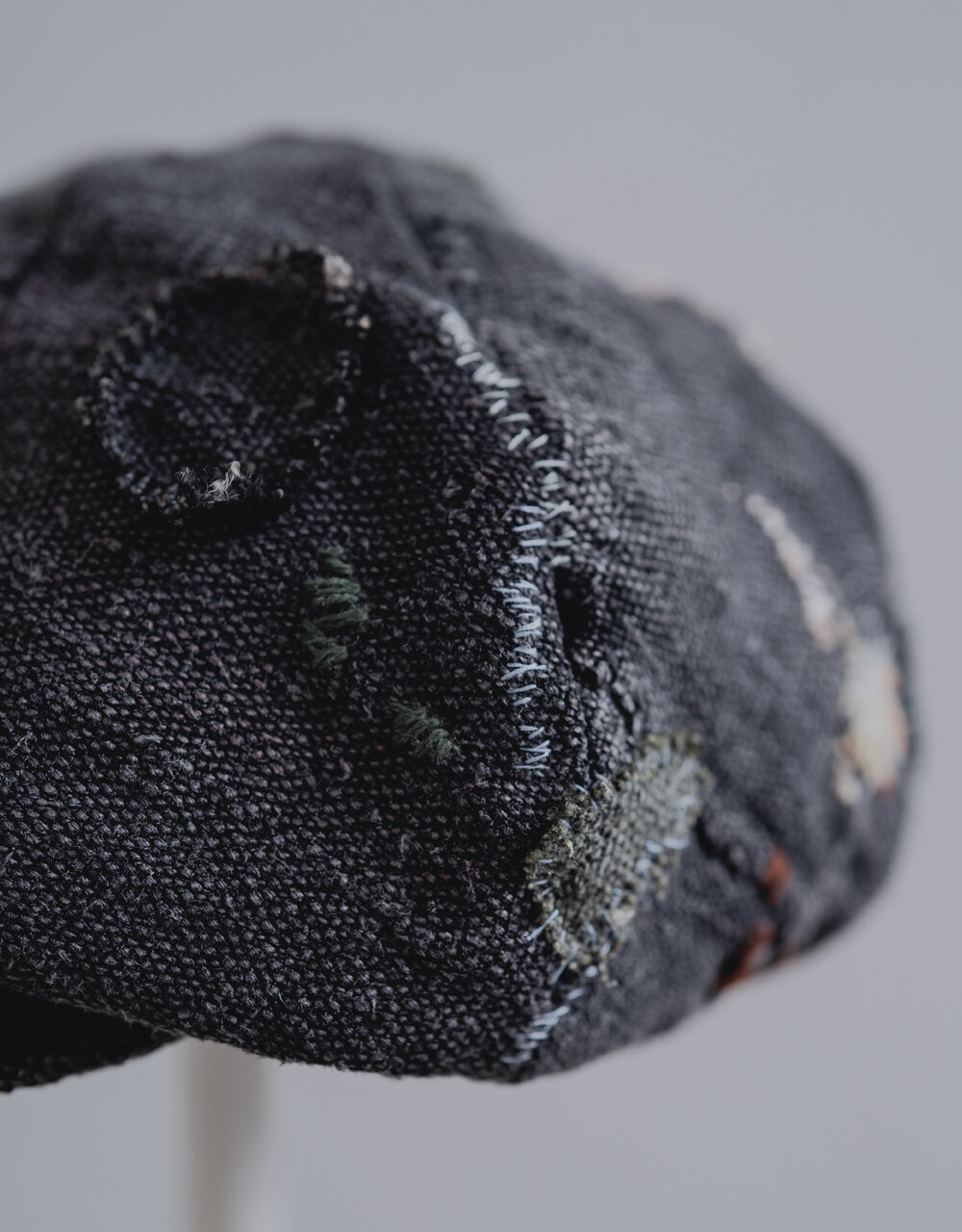 모자를 만들어 인도의 빈티지 보로 원단과 손자수를 더하였습니다.