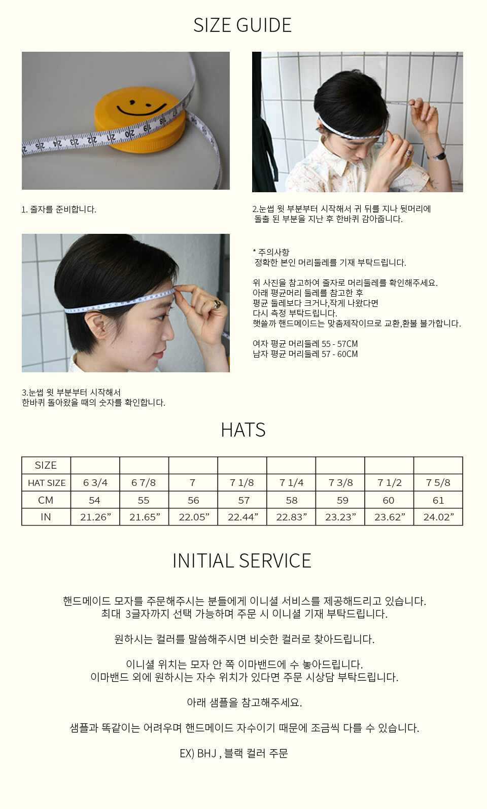 모든 모자는 주문 후 영업일 기준 7일 소요되는 오더메이드입니다.
