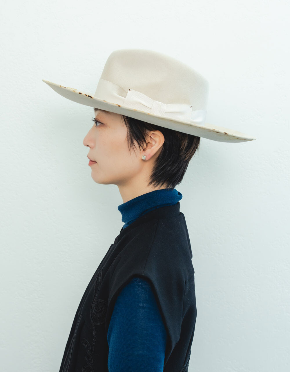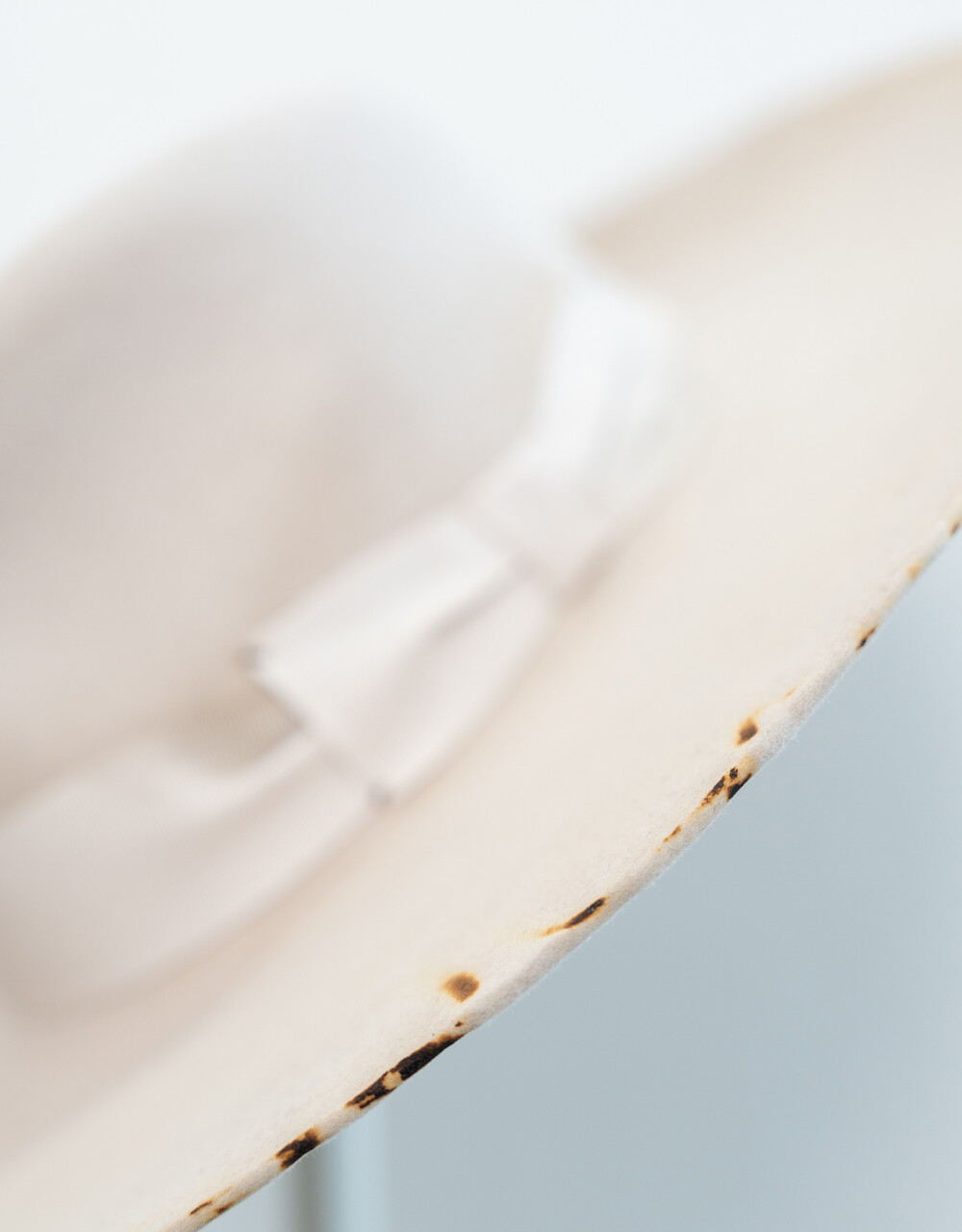 단단한 래빗퍼 펠트로 만들어진 페도라 입니다.